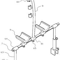 本实用新型涉及胸腔镜领域,尤其涉及一种胸腔镜目镜用冷光源线辅助支撑用具,该支撑用具可与床板两侧的固定板连接,可对冷光源线固定的同时,对工作人员的手臂起到支撑作用,降低工作人员的劳动强度。包括两侧的支撑件。第一套筒内表面固定设有矩形凸起,横杆上设有冷光源线支撑件,冷光源线支撑件包括滑动套在横杆上的第二套筒,第二套筒内端设有与矩形凹槽配合的矩形凸起,第二套筒底部向上旋拧有紧固螺栓,第二套筒顶面与可塑形的支杆底面固定连接,支杆内侧面间隔固定设...
