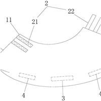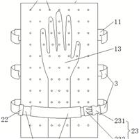 本实用新型涉及一种耳科手术用束发带,包括用于对头发包裹收纳的收容袋,还包括用于将患者头发进行束紧限位的限位组件;所述限位组件包括至少三个平行等距分布的限位板和通过弹性铰接轴设置于限位板顶端可与头发相接触的夹板。该耳科手术用束发带,通过夹板、限位板、束紧件、弹性绳和卡扣件的配合使用,医护人员可利用弹性绳及束紧件将限位板进行连接,此时形成圆形的限位板可对患者头部进行卡箍,并利用夹板尽可能的将患者头发向上拨动限位,此时再将收容袋利用卡扣件固定...