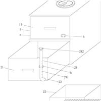 本实用新型公开了一种抽屉式体温计浸泡容器,包括呈上下堆叠的干燥箱和浸泡箱,干燥箱的顶部可拆卸固定有一定时器,干燥箱内有前后抽拉的底部镂空式抽屉,浸泡箱内有前后抽拉的浸泡液盛装抽屉,浸泡液盛装抽屉内置放有可取出的一底部镂空式体温计放置架,底部镂空式抽屉通过底部镂空与浸泡液盛装抽屉连通,在浸泡液盛装抽屉的前侧开有与浸泡液盛装抽屉内部连通的出液孔,出液孔连接有一条外置于浸泡液盛装抽屉前侧的可水平放置或竖直放置的透明软管,透明软管上印有刻度。本...
