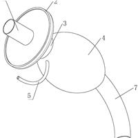 本实用新型公开了一种结构改进型的新型口咽通气导管,由气囊接口、接气管、转角管、进气管、腔内气囊和弯曲通气管组成,该结构改进型的新型口咽通气导管创新性的在进气管和弯曲通气管之间设计了椭球形结构的腔内气囊,并在接气管的前端还设计了可以直接与简易呼吸气囊对接的气囊接口,免去了传统患者使用面罩的通气方式,并且在对患者抢救时,该新型口咽通气导管的腔内气囊可直接放入患者口腔内,并可以立即接入呼吸气囊,改善患者通气,解决了传统的无插管患者使用前需要将...