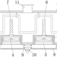 本实用新型公开了一种体外循环机用热交换器,包括交换器壳体,所述交换器壳体的内壁嵌设安装有循环导液管,且交换器壳体的内底壁开设有两个位置相对应的安装孔,安装孔的内壁固定连接有固定盒,固定盒的内壁固定安装有半导体制冷片。该体外循环机用热交换器,通过设置固定盒、半导体制冷片、散热导风扇和导风套筒,利用散热导风扇可以将半导体制冷片制热端发出的热量输送至导风套筒中,在利用导风套筒表面若干个出风孔将热空气均匀散发在交换器壳体的内部,从而方便对交换器...