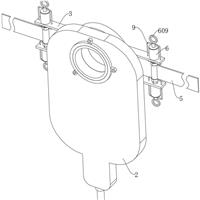 本实用新型涉及呼吸机技术领域,且公开了一种呼吸机的改良结构,包括底座,所述底座的上表面固定连接有传动装置,所述传动装置的一侧转动连接有转动杆,所述转动杆的一端固定连接有调节杆,所述调节杆的上表面固定连接有套环,所述套环的上表面固定连接有第一固定块,所述第一固定块的一侧螺纹连接有螺栓,所述调节杆的一端通过螺纹螺纹连接有套筒。通过传动装置、调节杆、套筒、螺纹孔、套环、第一固定块、螺栓以及套筒的配合设置,使得呼吸机的呼吸管固定在套环上,通过调...